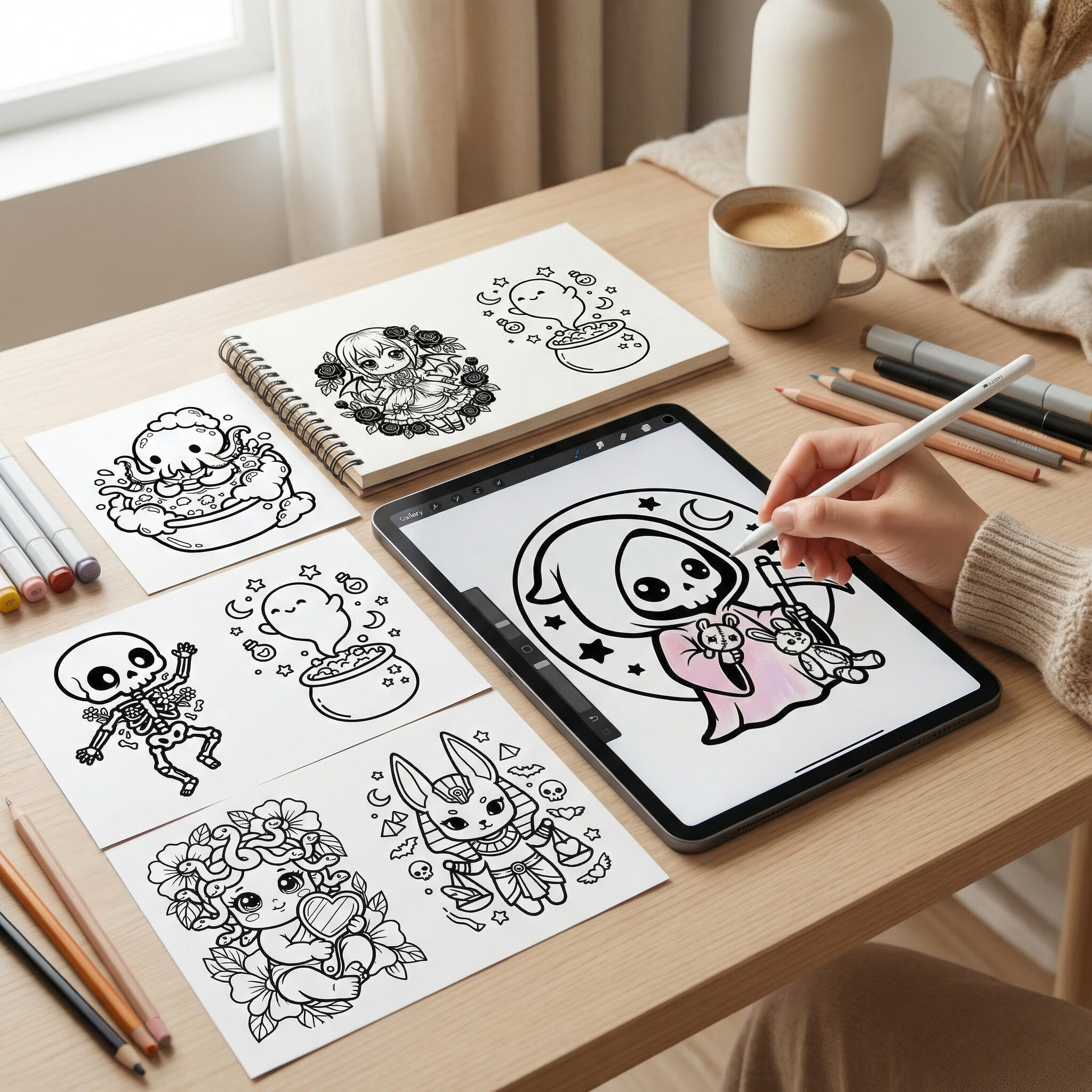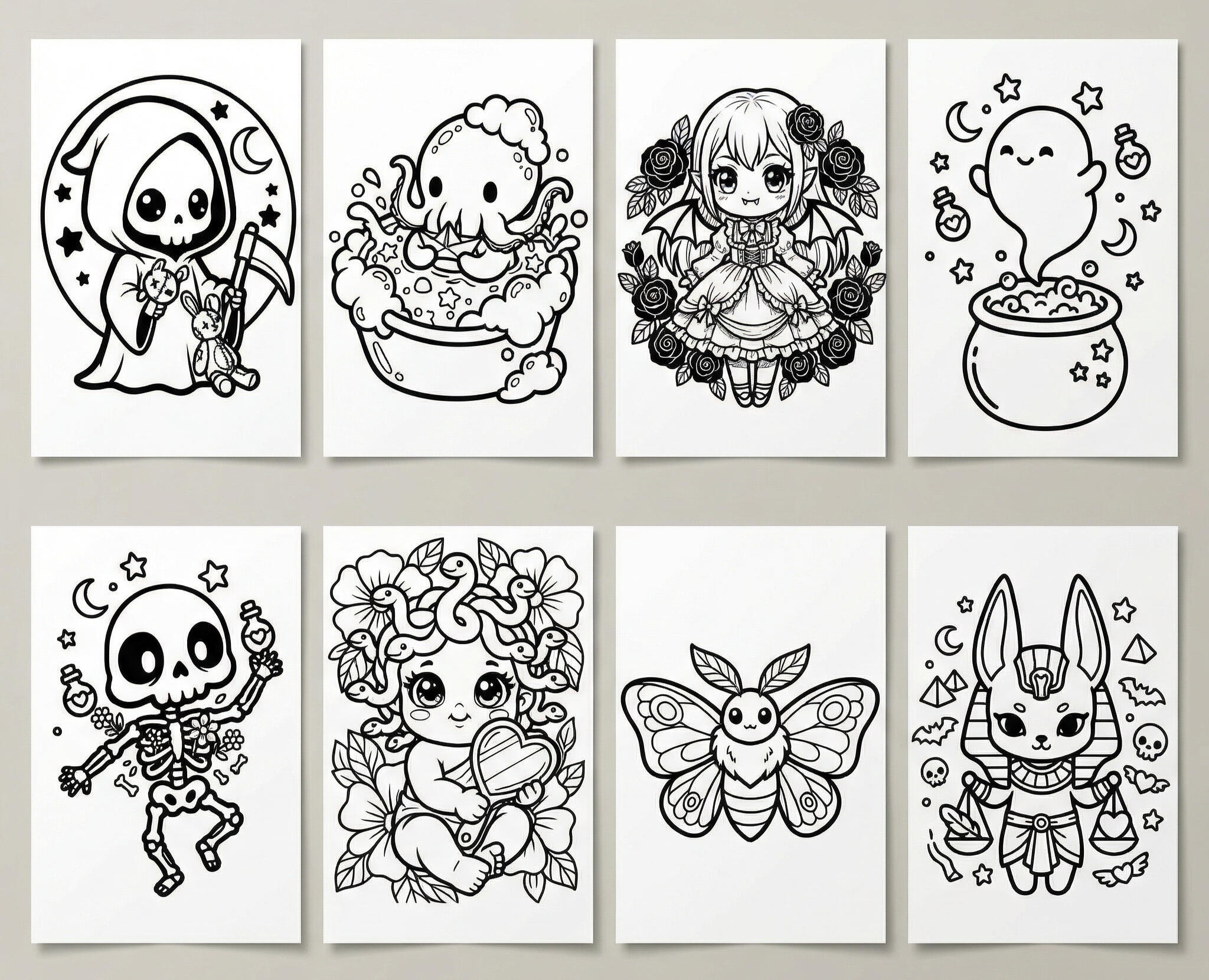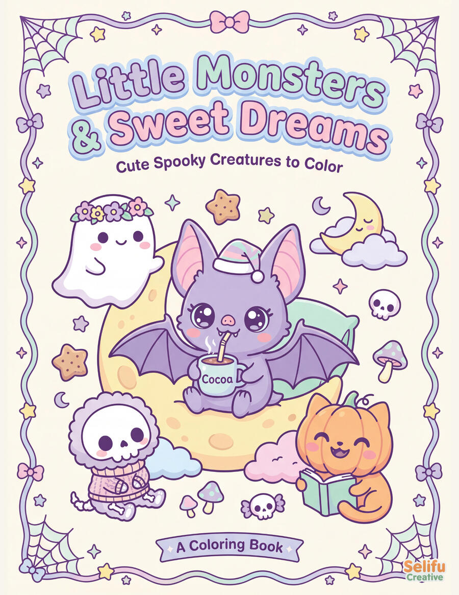 This coloring book is designed to bring comfort, creativity, and a smile while you enjoy relaxing coloring moments.Cute, calming, and just a little bit spooky β in the most charming way.
